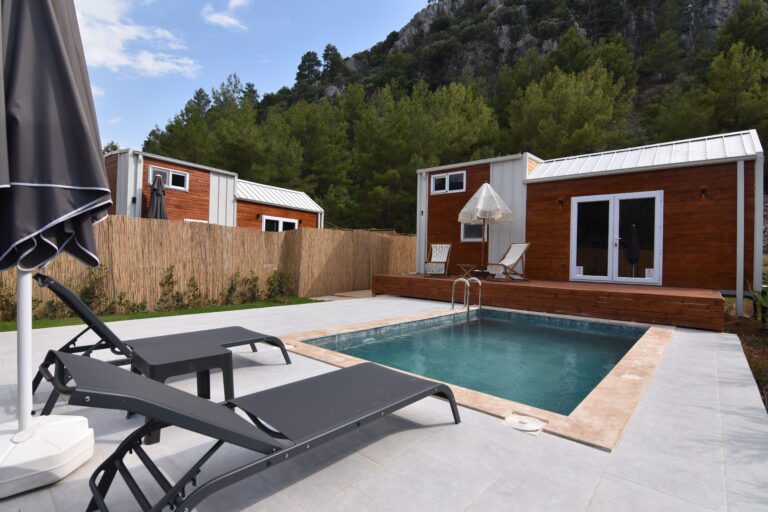 26 m2’lik Minik Evimizin özel havuzu (4×5 m) bulunmaktadır. İçerisinde iki tane çift kişilik yatak bulunmaktadır. Yatak odası, loft kat, duş ve lavabodan oluşan odamız eşsiz bir tatil deneyimi isteyenlerin hizmetindedir.